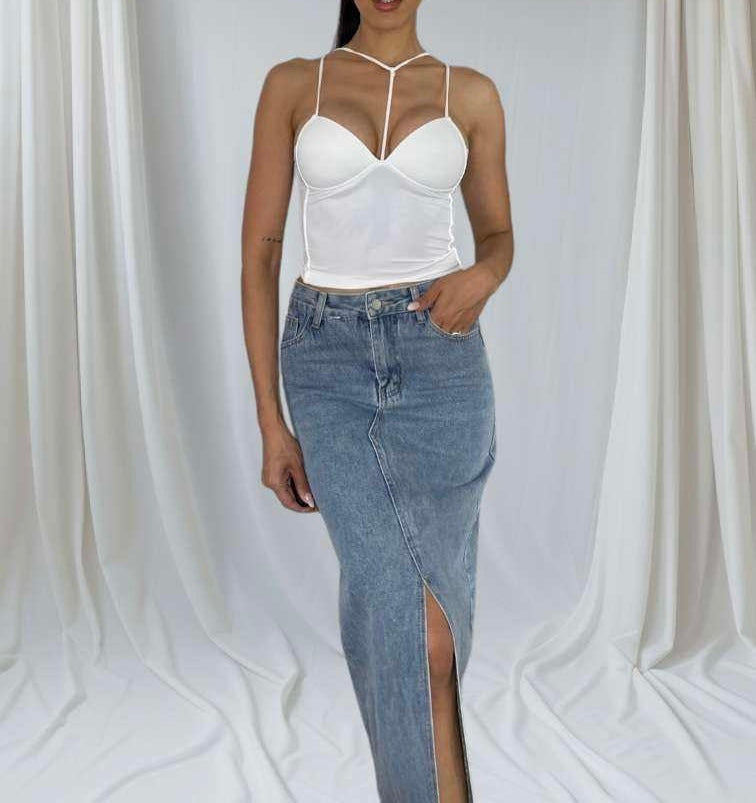 Aumentar a quantidade de Saia de ganga racha à frente