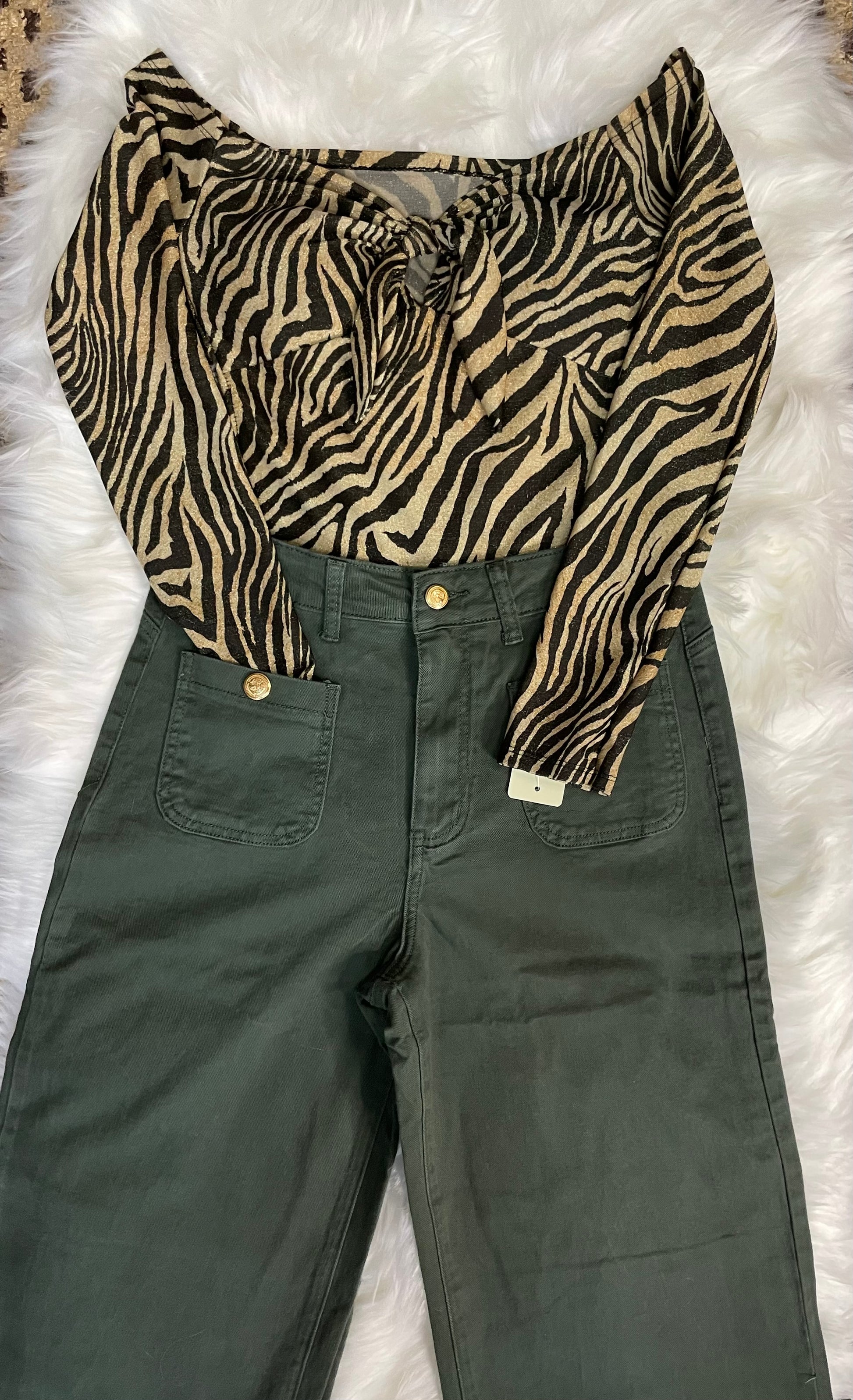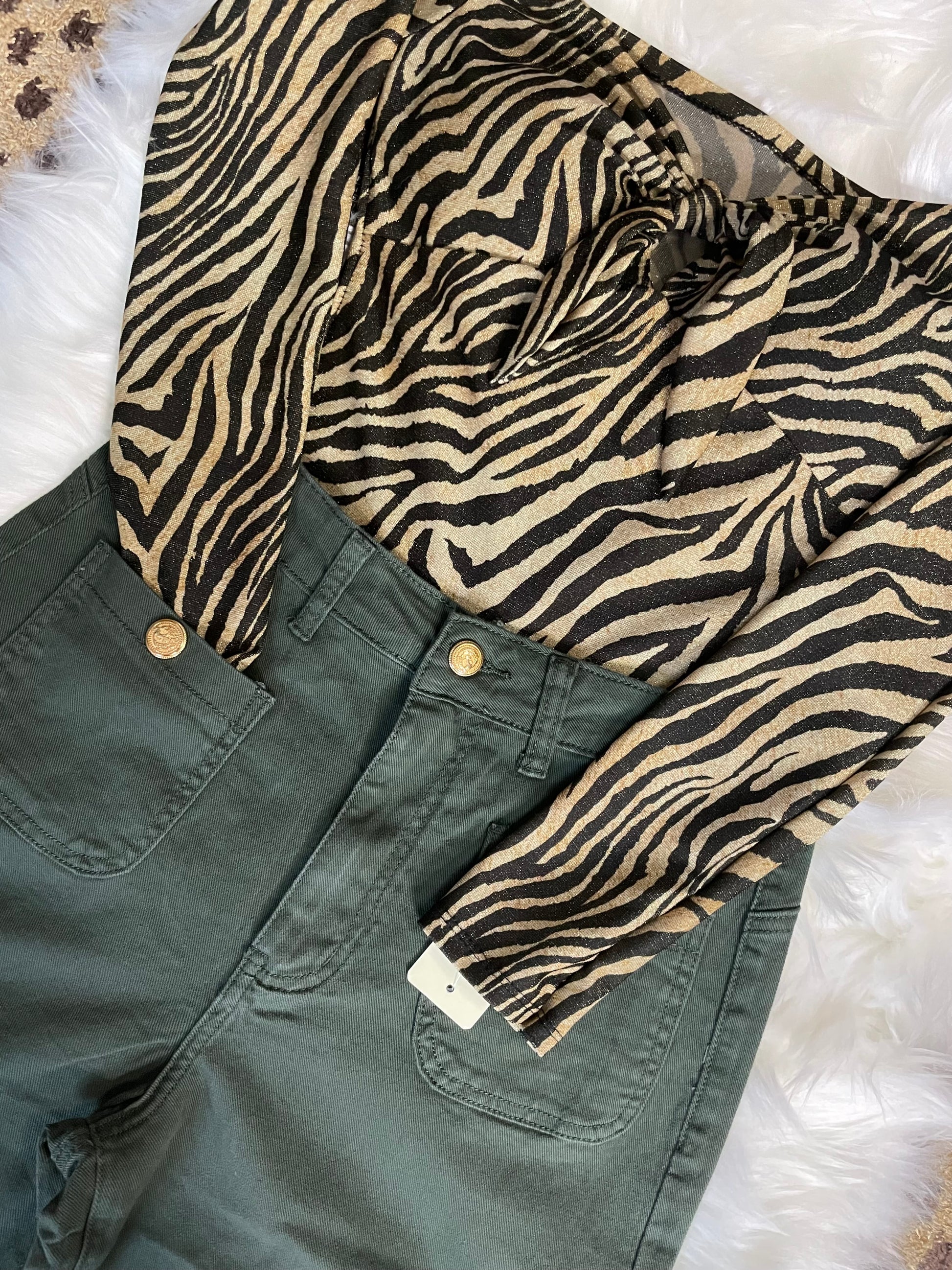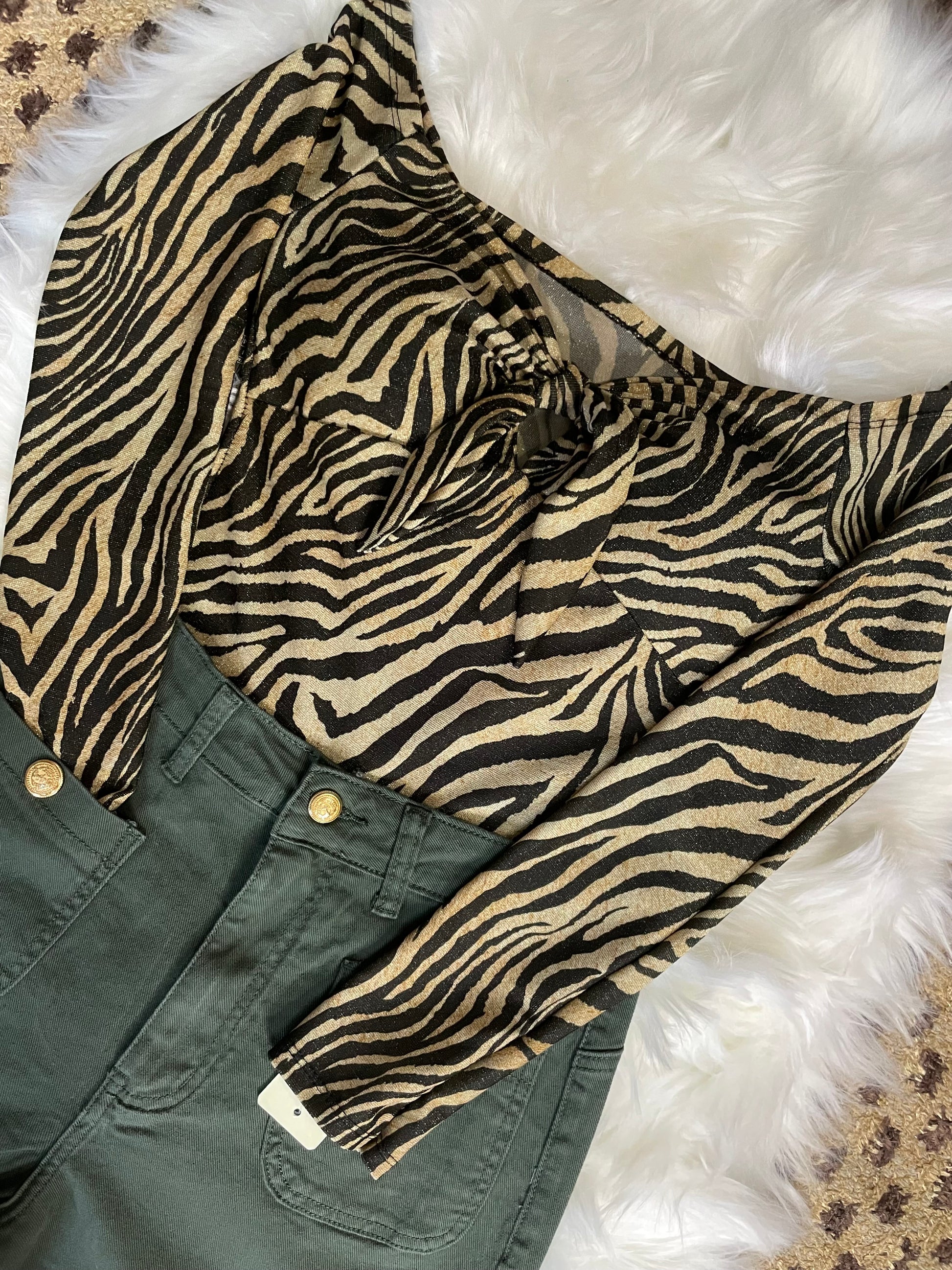 Top com padrão de zebra e top com padrão de cobra, tamanho único de XS a M